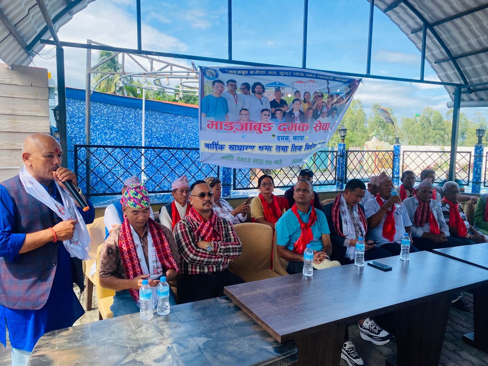 भदौ ७, दमक / झापाको दमकमा माङ्जाबुङ दमक सेवा समाजको वार्षिक साधारण सभा तथा तीज विशेष कार्यक्रम सम्पन्न भएको छ। शनिबार दमक–१ स्थित डी टाउन होटलमा एक कार्यक्रमका बीच वार्षिक उत्सव मनाइएको हो।