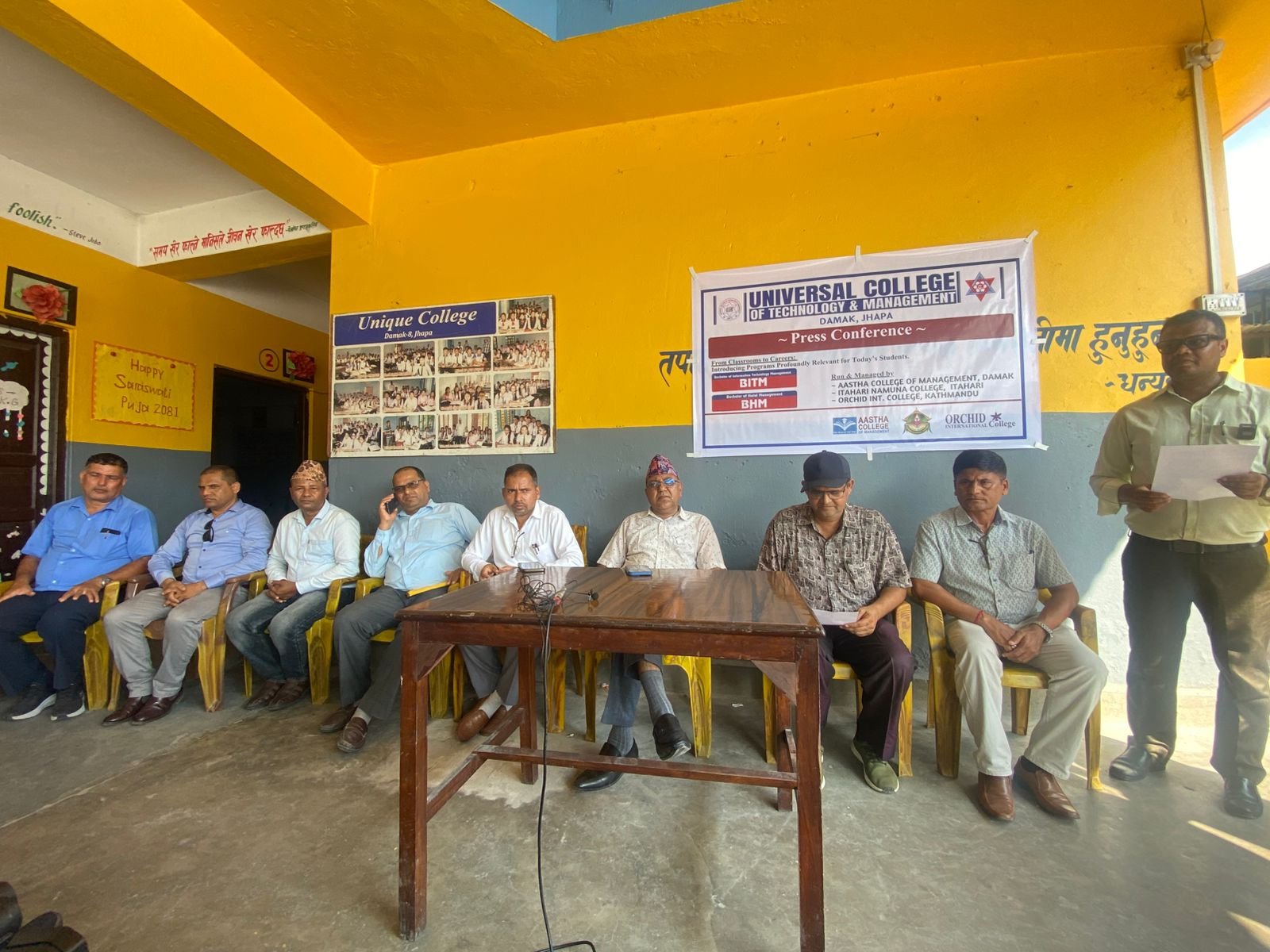 दमक, भदौ ९ – झापा दमकमा प्राविधिक र सिपमूलक स्नातक तहका नयाँ शैक्षिक कार्यक्रम सञ्चालन हुने भएका छन्। आस्था कलेज दमक, नमुना कलेज इटहरी र अर्किड इन्टरनेशनल कलेज काठमाडौंको संयुक्त व्यवस्थापनमा “युनिर्भसल कलेज अफ टेक्नोलोजी एण्ड म्यानेजमेन्ट” संचालनमा आउने भएको हो।