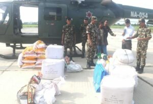 प्रदेशको आन्तरिक मामिला तथा कानुन मन्त्रालयले नेपाली सेनाको हेलिकप्टरमार्फत बिहानै राहत सामग्री पठाएको हो। स्थलमार्ग अवरुद्ध भएका कारण तत्कालका लागि हवाई मार्ग प्रयोग गरिएको मुख्यमन्त्री कार्कीले जानकारी दिनुभयो।
