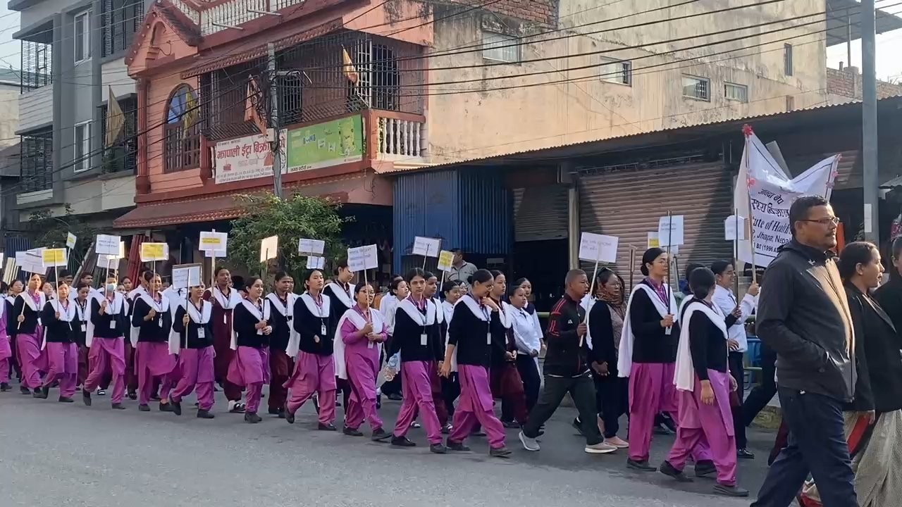 दमक । ‘सबै महिला र बालिकामाथि हुने डिजिटल हिंसाको अन्त्य गर्न जुटौँ’ तथा ‘प्रविधिको सही प्रयोग गरौँः लैङ्गिक हिंसा अन्त्य गरौँ’ नारालाई केन्द्रबिन्दु बनाएर आज दमकमा बृहत् र्याली निकालिएको छ।